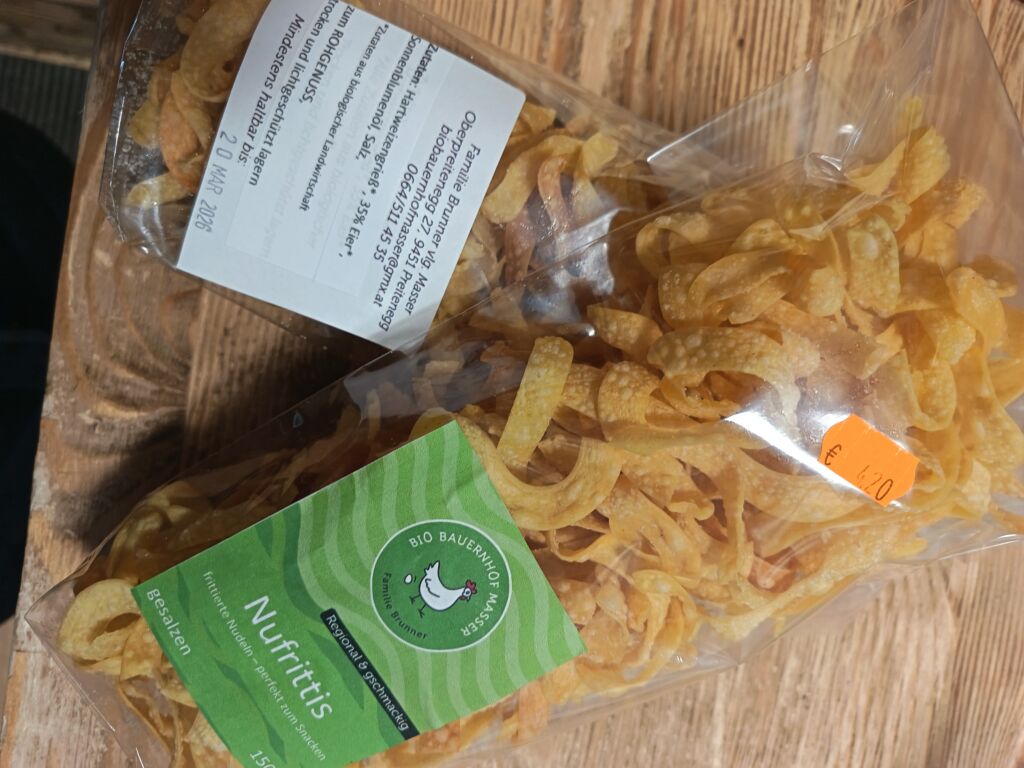Neu im Sortiment: Nufrittis vom Bio-Bauernhof Masser Unsere Nufrittis sind frittierte Nudeln vom Bio-Bauernhof Masser – ein regionaler, knuspriger Snack …